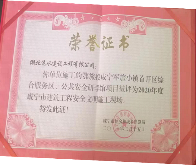 近日,鄂旅投咸寧軍旅小鎮(zhèn)首開區(qū)公共安全研學(xué)館榮獲“2019~2020年度第三批湖北省建筑工程安全文明施工現(xiàn)場(chǎng)”獎(jiǎng)。該獎(jiǎng)項(xiàng)是湖北省建筑行業(yè)安全文明施工的最高榮譽(yù)獎(jiǎng)項(xiàng)。此榮譽(yù)的獲得與鄂旅投集團(tuán)總部、咸寧集團(tuán)領(lǐng)導(dǎo)高度重視安全生產(chǎn)工作密切相關(guān)。同時(shí),該項(xiàng)目還榮獲湖北省建筑結(jié)構(gòu)優(yōu)質(zhì)工程獎(jiǎng)、咸寧市2020年度建筑工程安全文明施工現(xiàn)場(chǎng)(桂花杯)等獎(jiǎng)項(xiàng)。目前,咸寧集團(tuán)正在參與評(píng)審“楚天杯”。